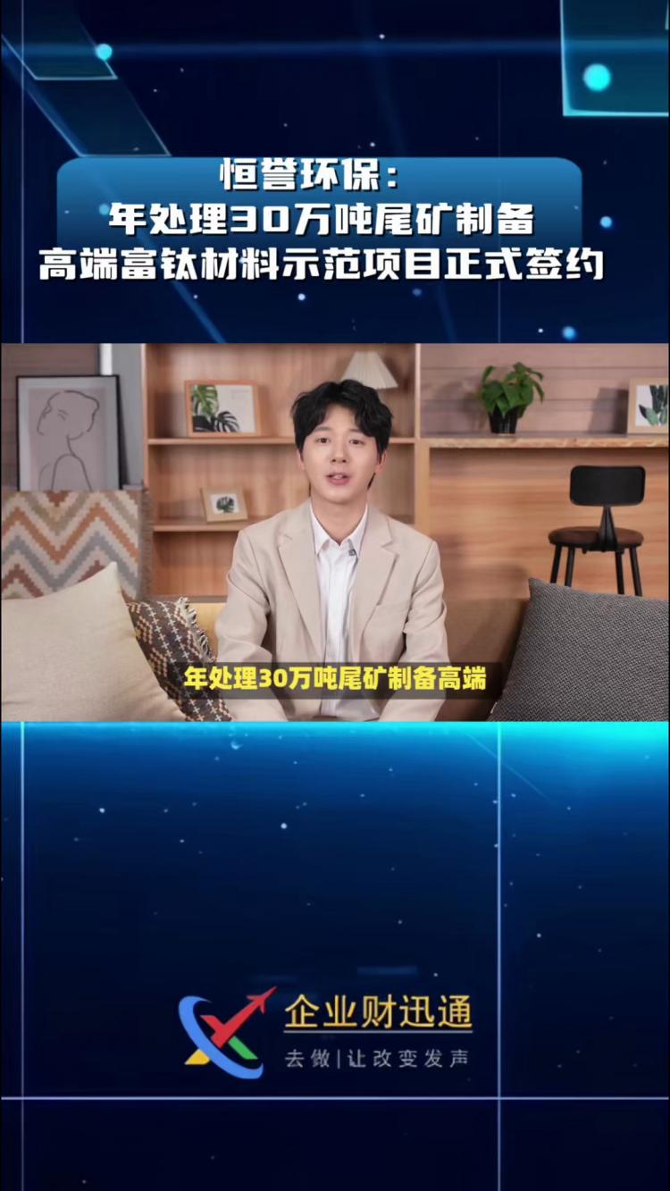恒誉环保:年处理30万吨尾矿制备高端富钛材料示范项目正式签约