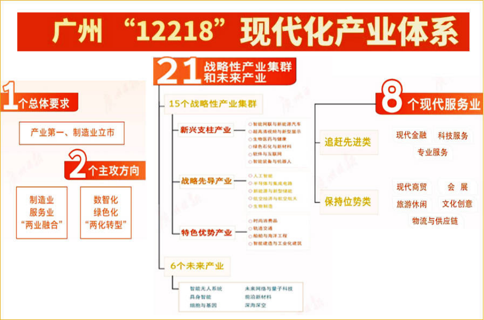 其次,是扎实到可怕的产业底盘。 广州近年来喊出“产业第一、制造业立市”,积极构建“12218”现代化产业体系。