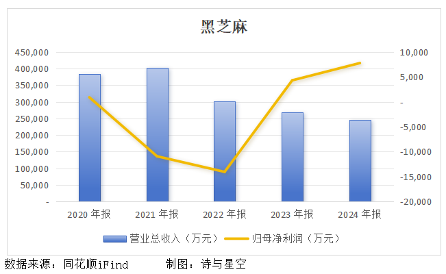与口碑同步下滑的,还有黑芝麻[000716.SZ]的业绩。