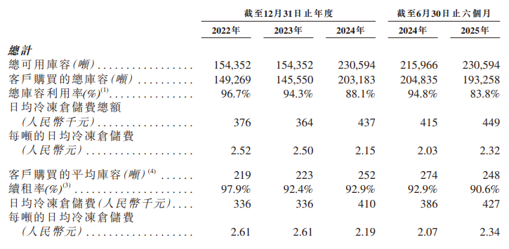 面对宏观挑战,公司业绩始终保持稳定:2022-2024年营收分别为人民币2.37亿元、2.01亿元、2.34亿元,2025年上半年营收同比增长5.08%至1.18亿元;同時,收入结构持续优化,冷冻食品仓储服务占比从2022年的58%提升至2025年上半年的68.8%,门店租赁服务占比从16.7%增至 20.1%,多元化结构有效分散风险。