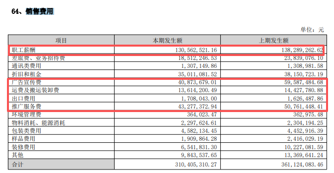 据2025中报,职工薪酬、广告宣传费、推广服务费是销售费用支出重头,分别为1.31亿元、0.41亿元、0.43亿元,同比分别下滑5.59%、31.41%、14.74%。
