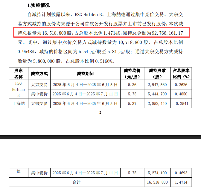2025年5月,上述两大股东再次披露减持计划,当年9月完成减持,合计减持16,518,800股,套现金额9276.62万元,合计持股数量比例从6.15%下滑至4.69%,这也意味着后续减持不需要再进行披露。