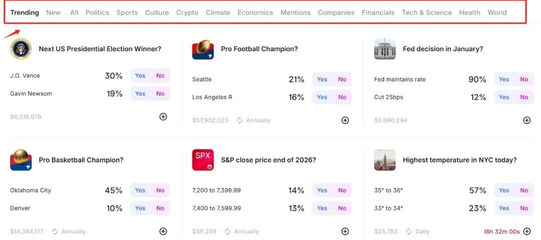 经济与金融类事件合约同样占据重要位置,主要围绕美联储利率决议、通胀数据以及主要股票指数相关事件展开,受到部分专业交易者与机构用户的关注。
