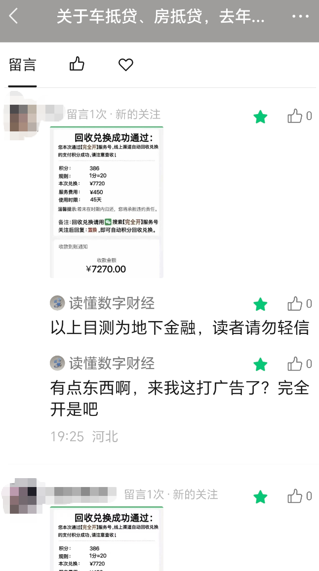 面对当前车抵贷的火热,《读懂数字财经》秀了下去年7月的预判文,万万没想到,留言区被人当成了获客通道。
