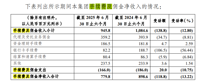 不过,作为银行中间业务的重要组成,手续费及佣金收入持续承压。以2025年半年报为例,代理及受托业务佣金收入同比下滑8.81%。银行卡手续费收入也从2023年的5.56亿元缩减至2025上半年的0.822亿元。