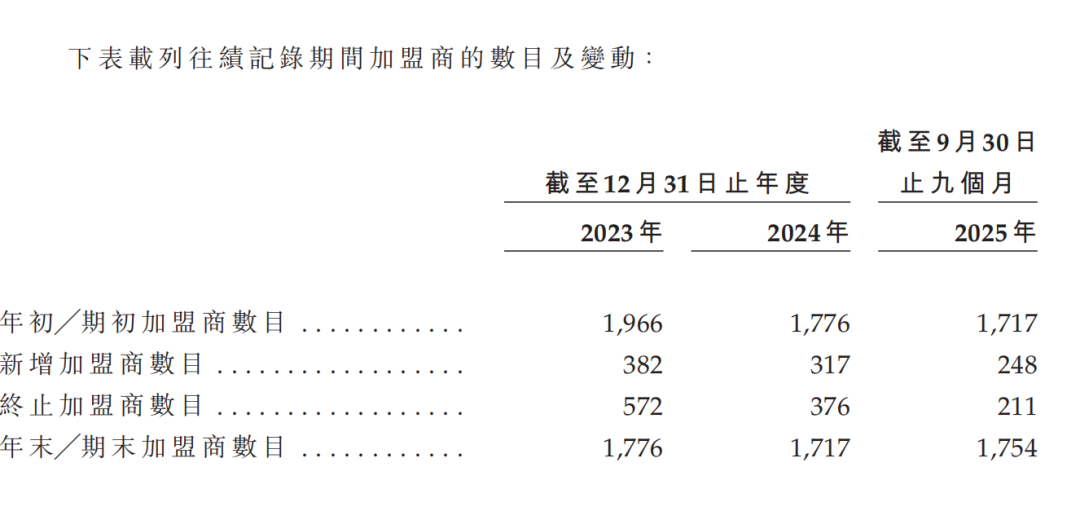 2023年以来,旗下门店数量和收入几无增长,支撑起门店规模的加盟商数量,甚至整体呈现出略微下降的趋势。