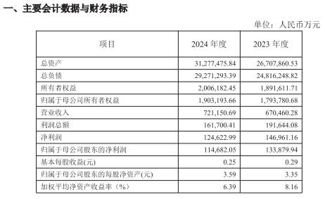 再细看利润表,民泰银行的‘增收不增利’窘境暴露无遗。2024年,其归母净利润仅为11.47亿元,同比骤降14.3%。