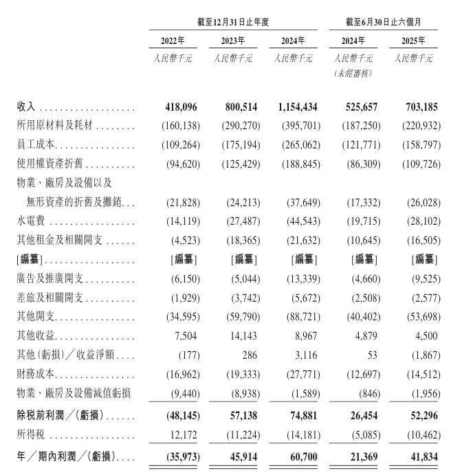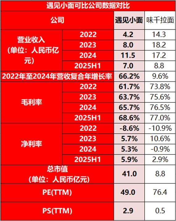 2022年至2025年H1,遇见小面的毛利率分别为61.7%、63.7%、65.7%、68.6%,同期净利率分别为-8.6%、5.7%、5.3%、5.9%,截至2025年6月30日,公司经营性现金流为人民币2.02亿元,账上现金及现金等价物共有0.50亿元,资金储备不够充足。