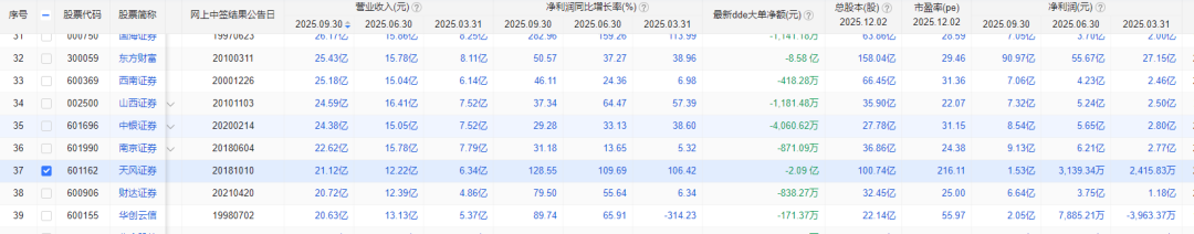 行业排名亦反映了修复之路的任重道远。据同花顺,2020Q3天风证券营收规模在50家相关上市券商中排行第27,2025Q3则降至37。