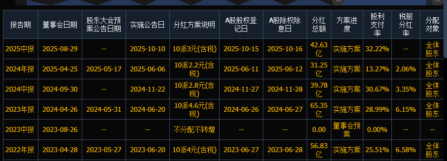 大手笔分红,拨备覆盖率下滑。虽然上海银行净利润连续多年放缓,不过在分红这块却是颇为大方,2022年、2023年分别分红56.83亿元、65.35亿元,2024年中报、年报分别分红39.78亿元、31.25亿元,合计71.03亿元,今年上半年分红42.63亿元,较上年同期有所增加。