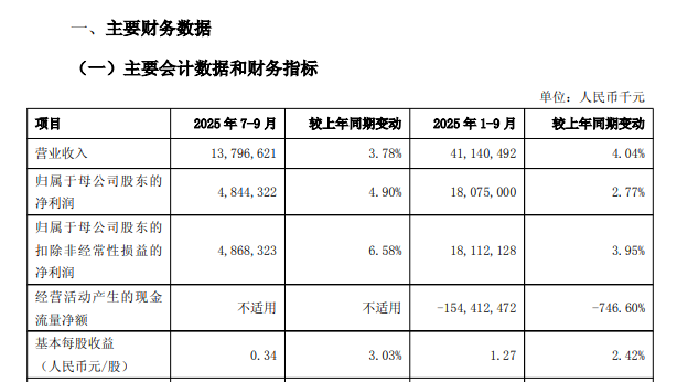 据短平快解读了解,2025年前三季度,上海银行实现营业收入411.4亿元,同比增长4.04%,归母净利润180.75亿元,同比增长2.77%,收入、净利增速较去年同期有所上升,但与2024年全年存在一定差距,增长压力仍然存在。