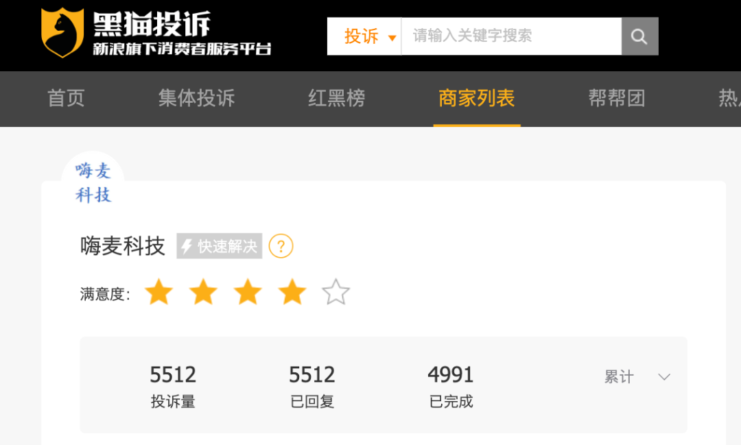 以上文中提到的嗨麦科技为例,黑猫投诉平台显示,截至目前,嗨麦科技的投诉量高达5512条,历史投诉记录显示,嗨麦科技合作过大量助贷平台,其中包括“用钱花”、“金谷优品”、“戒易花”等。