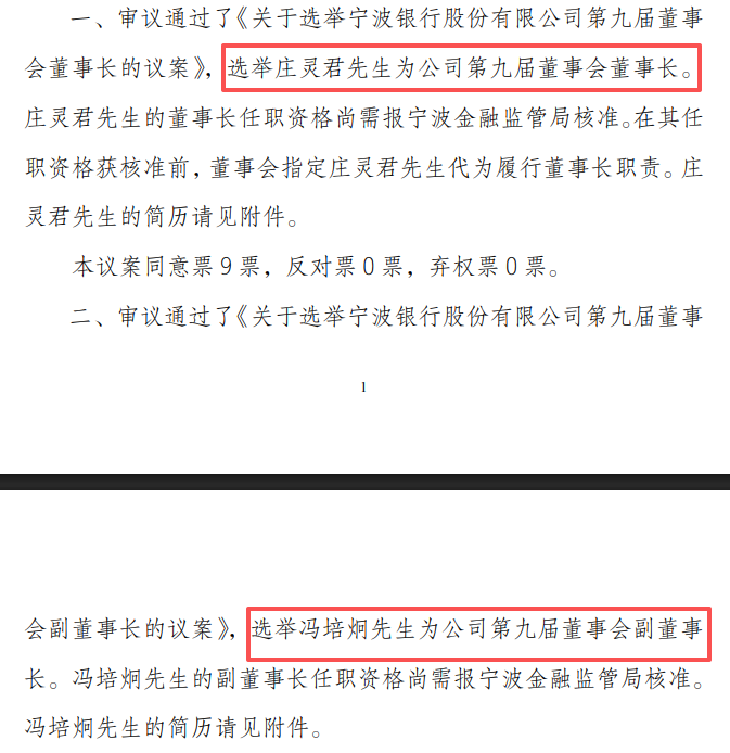 据短平快解读了解,原行长庄灵君被选举为第九届董事会董事长,任职资格尚需宁波金融监管总局核准,在此之前,董事会指定其代为履行董事长职责,其自2022年4月起担任行长职务。
