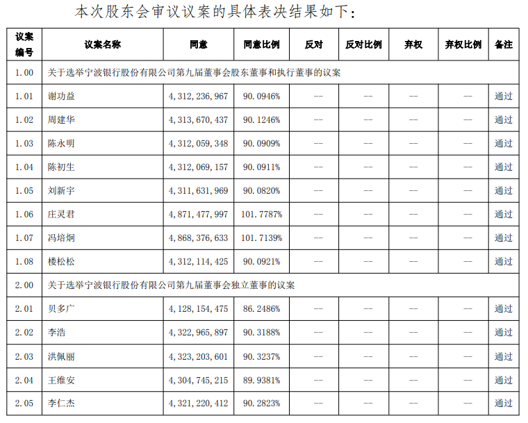 董事会换届选举,董事长陆华裕到龄卸任。2月26日,宁波银行进行董事会换届选举,选举谢功益、周建华、陈永明、陈初生、刘新宇、庄灵君、冯培炯、楼松松为公司第九届董事会股东董事和执行董事,其中周建华、刘新宇、庄灵君、冯培炯是第八届董事会成员,另外4名董事均为新晋董事,显然董事变动较大。另外,朱芳华被选举为职工董事。