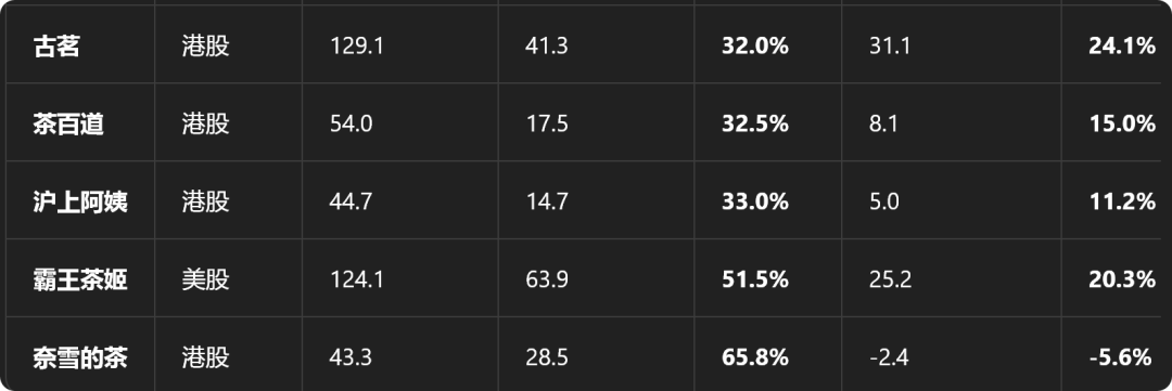 从蜜雪冰城财报也可以得到印证。2025年的毛利率只有31.14%,相比2024年的32.46%下滑了1.32个百分点。从茶饮上市公司来看,蜜雪冰城31.14%的毛利率属于偏低水平。茶饮第一股奈雪的茶尽管2025年净亏损2.391亿元,但其毛利率高达66.05%。茶百道的毛利率为32.51%,古茗毛利率是32%,沪上阿姨为33%,霸王茶姬毛利率为51.5%,在已知的上市茶饮品牌中,蜜雪冰城的毛利率垫底,或和其选择在黄金地段开店增加了店铺租金支出有很大关系。但蜜雪冰城17.66%的净利率却仅次于古茗和霸王茶姬。