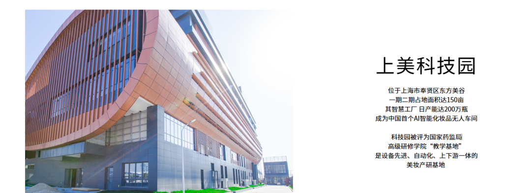 以上海奉贤的韩束科技园为例,据公司官网,这座工厂一二期占地面积达150亩,具备日产200万瓶的产能,成为中国首个AI智能化妆品无人车间,该科技园还被评为国家药监局高级研修学院“教学基地”。
