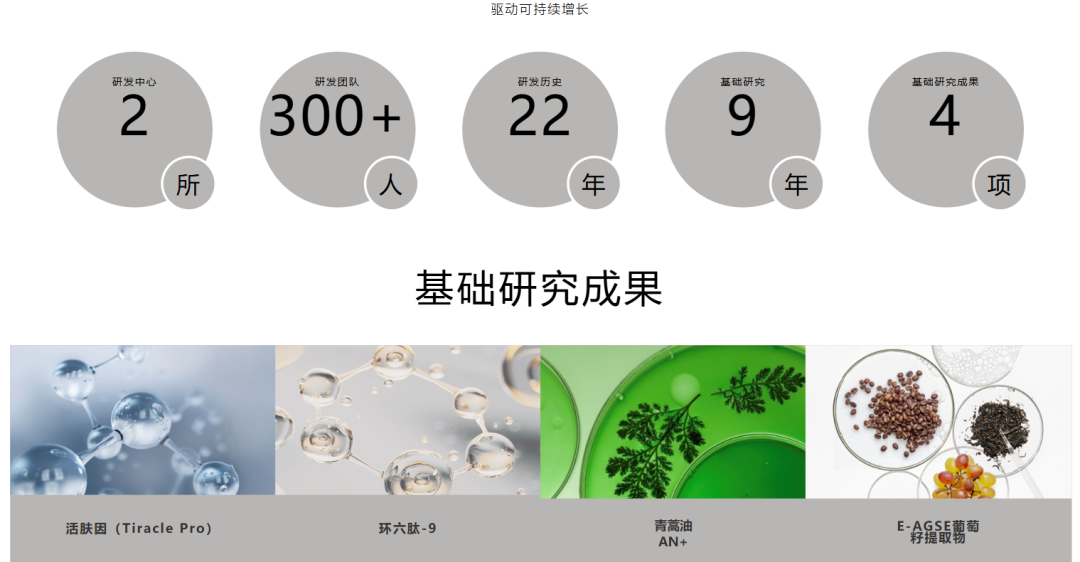二十三年的科研长跑,换来实打实积累。据上美股份官网,截至2026年3月2日,公司拥有2所研发中心,300余人研发团队,9年基础研究,4项基础研究成果,其中,环六肽-9的技术突破最具代表性。
