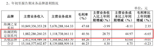 C端市场增长放缓的情况下,B端市场成为海澜之家重要增长点。2025年前三季度,海澜团购定制系列实现主营业务收入18.82亿元,同比增长28.75%;同期,海澜之家系列主营业务收入减少了3.99%。