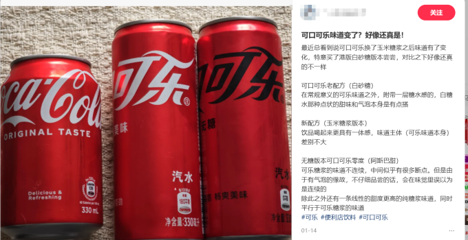 打开小红书,不乏“可口可乐难喝”、“味道变了”等吐槽声,言语犀利或有偏颇片面处,却需引起企业警惕。据央视新闻、环球网,2025年7月,美国总统特朗普曾在社交媒体上透露,正与可口可乐公司探讨“将可乐中使用的甜味原料由高果糖玉米糖浆换成蔗糖”,并称这样的可乐“更好”。
