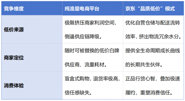 口号背后,超90万员工构成的京东物流铁军,摊薄了单均履约成本。最终用的供应链流转效率覆盖了让利空间,硬生生从运营环节挤出了冗余水分,“有品质的低价”得以真正意义上实现。