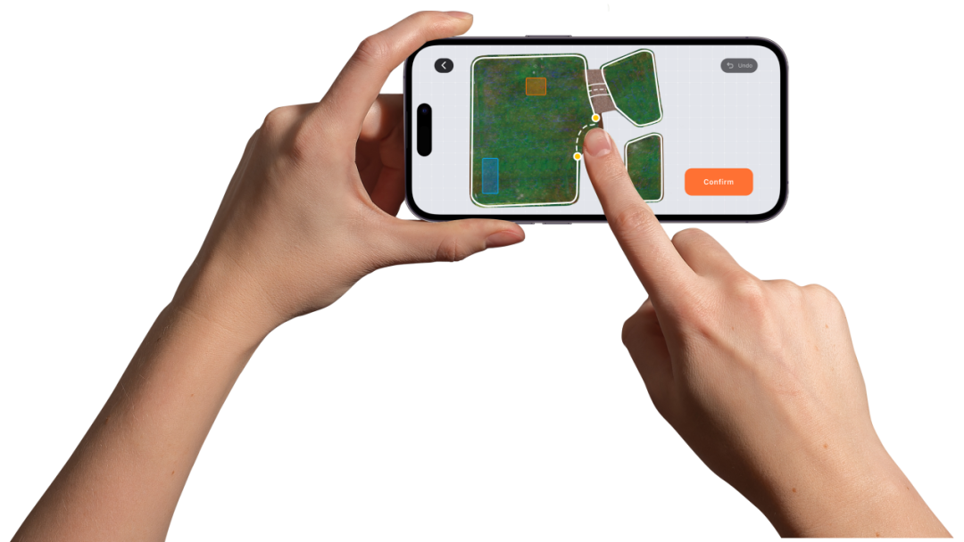 传统智能割草机需用户埋线、插杆或遥控建图,安装耗时且门槛高。未岚大陆全系产品支持“Drop and Mow”免部署功能,用户只需将设备放置于庭院,即可自动完成地图构建。配合GeoSketch™可视化编辑技术,用户可通过APP将庭院实景转化为全彩交互地图,直观划分割草区域、设置禁区或定制路径,甚至可针对不同季节调整割草高度。这一设计将专业级庭院规划简化为“拖拽点击”操作,大幅降低用户学习成本。