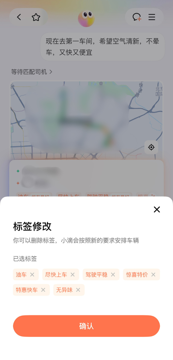 当然,这是理想状态,对于还处于1.0阶段的AI小滴来说,在高峰时段、供给紧张的区域,有些个性化标签可能无法完全满足,系统会在核心需求和其他需求之间做优先级排序。