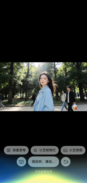“有嘴就行”的高频应用场景之一就是美图修图。要换背景、加效果还是去路人,只需把想法告诉小艺就能实现。在能听懂“人话”的基础上,小艺在细节方面的处理真的让人“叹为观止”,效果自然、细节清晰,修的图不会让人有“一看就是AI”的感觉。