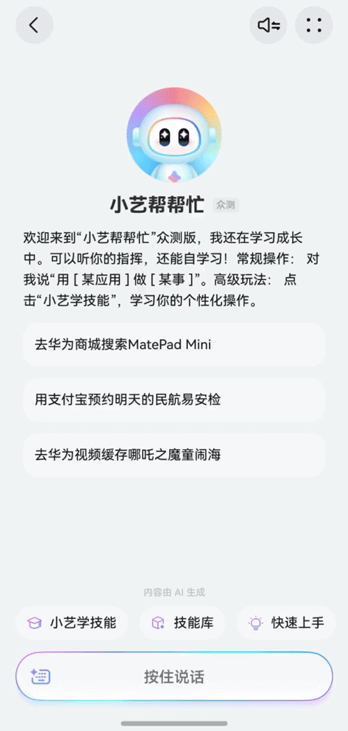 传统的AI助手,就像一家餐厅的传菜员,你点一道菜,他就上一道菜。而小艺更像你家里的私人管家,吃饭问题安排给营养师跟厨师,出行问题安排给导游跟司机,居家打扫安排给行政保洁……统筹全局,把家里打点得井井有条。