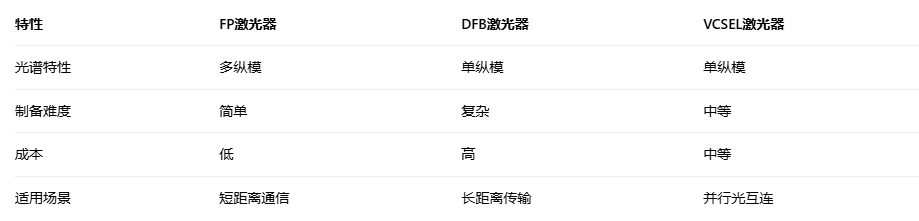 DFB也叫分布反馈激光器是在FP激光器的基础上,加了光栅,可以过滤模式,实现单模激光。Distributed Feed Back, DFB。