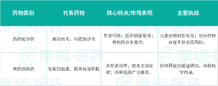 当前我国流感活动处于高流行水平,呼吸道感染疾病高发。在抗病毒西药需求激增的背景下,中成药凭借“多靶点-多途径”的整体调节优势,成为临床防治的关键力量。摩熵医药数据显示,2025年上半年呼吸系统中成药在全终端医院市场销售额超330亿元,其中13款独家品种占据TOP20榜单主导地位。康缘药业作为创新中药领军企业,其旗下金振口服液、散寒化湿颗粒等产品,不仅积累了扎实的循证证据,更在近期政策利好与市场需求的“风口”下,展现出巨大的市场潜力。