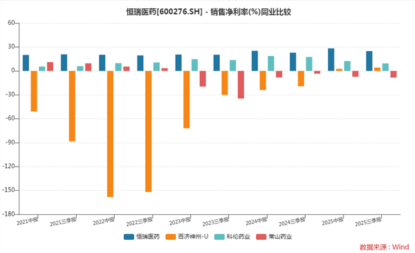 与许多创新药公司仍在亏损,还没有形成自我造血能力不同。恒瑞医药近年的销售净利率都在20%以上,在行业中表现突出。
