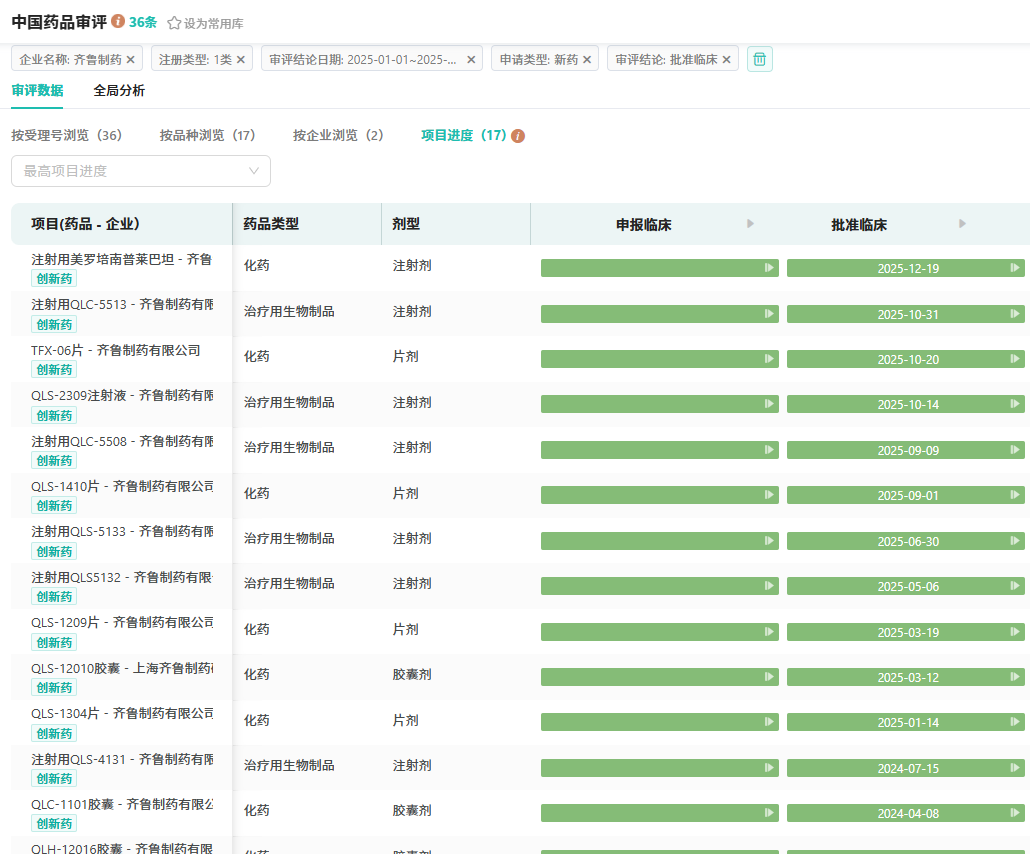 今年有8款1类新药首次在国内获批临床,包括4款化药和4款生物制品。这些新药的获批,不仅丰富了齐鲁制药的产品线,也为患者带来了更多的治疗选择。