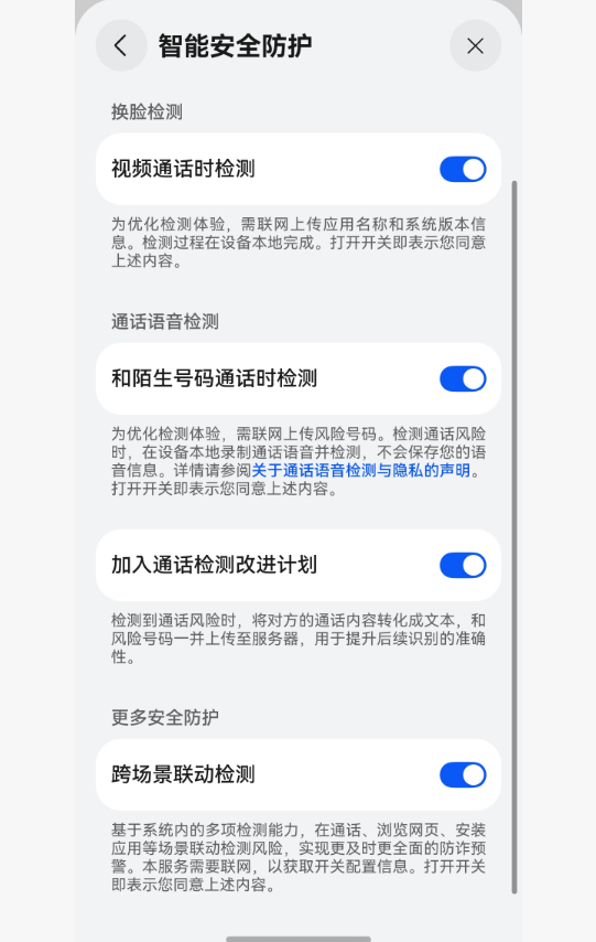 AI防诈功能能识别7类诈骗套路,有一次接到诈骗电话,手机立马弹窗预警,还提醒我不要泄露个人信息;我还开启了“亲情防诈”功能,爸妈接到诈骗电话的时候,我的手机也会收到提醒,还能远程挂断,再也不用担心他们被骗了。