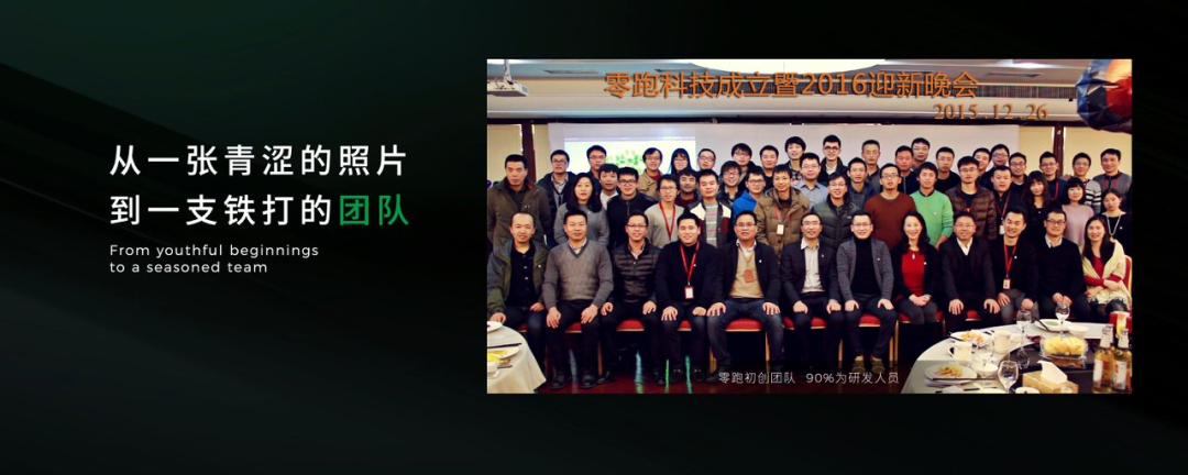 照片中的那时候朱江明还没有白头发,还有个细节值得注意,这张照片里面几乎90%是研发人员,人员的大半是三电研发人员,而且整车和三电的产品线的高管十年都没有变,可想而知零跑对技术的重视程度。