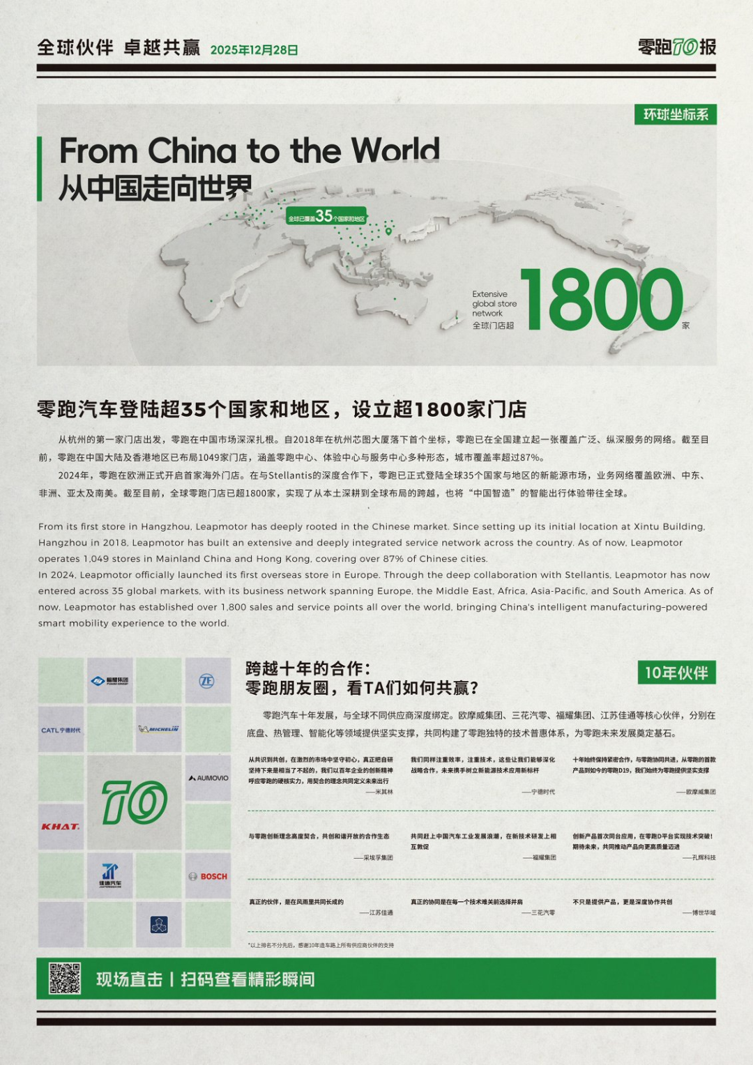 我们常说销量是验证一家车企好坏的标准,尽管这句话不全对,但同样也是最具说服力的论据。凭借十年的技术积累与体系化能力建设,零跑全面实现规模与效益的双提升。截至目前,其累计交付量已突破120万辆,2025年全年销量预计近60万辆,稳居中国造车新势力首位;单月销量突破7万辆,全球渠道网点超过1800家,其中海外超800家,已进入全球35个国家和地区。更为关键的是,零跑已实现连续季度盈利,企业经营步入高质量、可持续发展轨道。