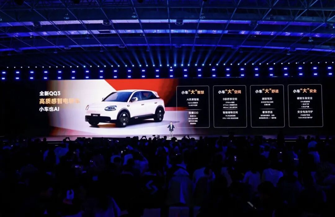 按照规划,今年一季度奇瑞将会发布3款,全年共发布17款以上的新产品,覆盖多品牌多车型的AI产品上市。其中全新QQ3作为一款6万级的入门级小车,搭载灵犀智舱 + Carmind 大模型,支持可见即可说、多场景语音互动,同时猎鹰500系统、高速 NOA、城市记忆领航以及全场景泊车能力等辅助驾驶功能也均实现上车。