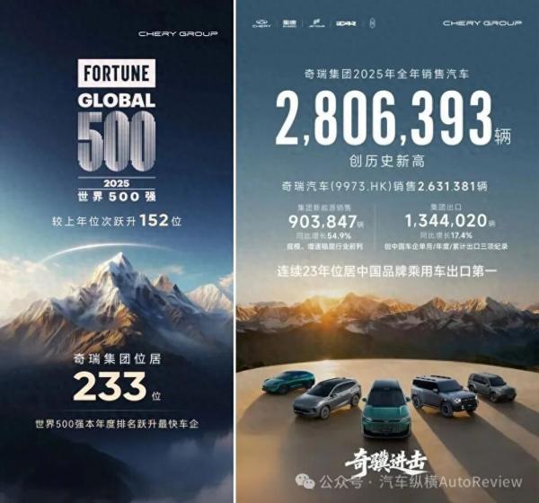 首先,星途2025年的“超越”绝非偶然,而是建立在奇瑞集团深厚技术积淀与自身精准战略布局之上。这一年,奇瑞集团在急流勇进中,傲然挺进世界一流车企阵营,成功登陆港交所开启资本全球化新篇章,《财富》世界500强排名跃升至第233位,以280.6万辆的年销量、7.8%的同比增幅及23年蝉联中国车企出口第一的战绩,为星途提供了最强劲的后盾支撑。