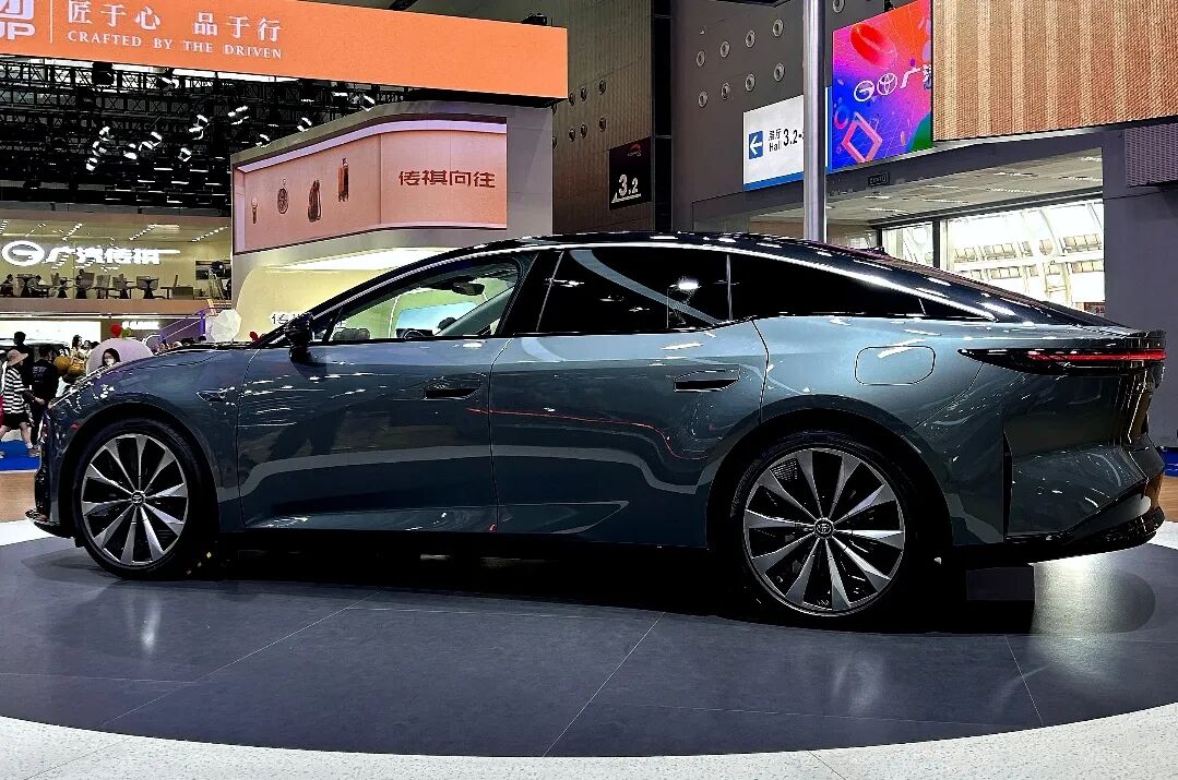 作为广汽丰田电动化转型的核心战略车型,铂智7定位中大型纯电轿车,车身尺寸达5130/1965/1506mm,轴距3020mm,直面小米SU7、比亚迪汉L等自主品牌主力车型。