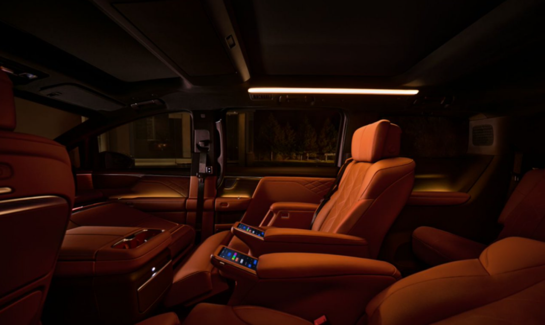 为了全方位看齐湾流的奢华美学,至境世家用上了5260/2023/1820mm的车身尺寸,轴距达3160mm,而风阻系数却保持在了0.258的低风阻水平。至境世家还采用了号称业内顶级的12层双色车漆的涂装工艺,配有晶钻展翼大灯和光羽流焰贯穿式尾灯。值得一提的是,世家首创的云台式礼宾空悬支持前后轴同时下降,车身可下降60mm,门槛高度仅355mm,配合手势智控滑移门,实用性和仪式感得到了完美兼容。