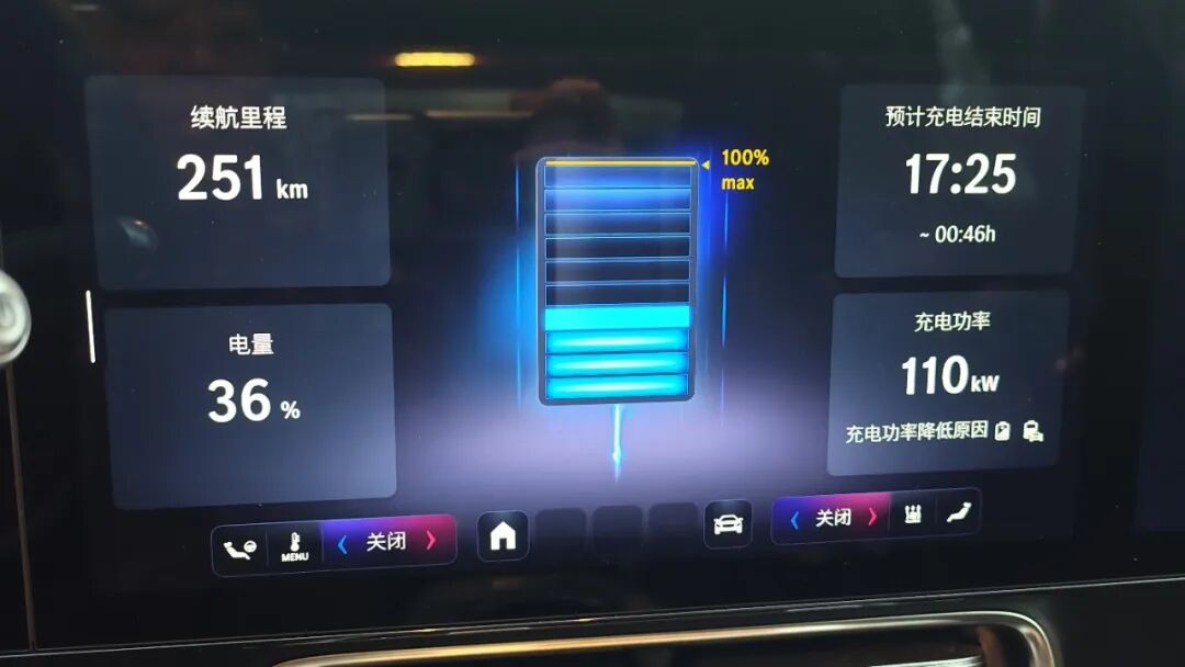 而奔驰还是细腻的,且无处不在。上车之后,不用一项一项的打开对抗低温的功能,座椅加热、空调、方向盘加热会同时给到,并尽快升到合适温度。续航的展示上,它会精确计算实际可达成里程,并同时给到此电量时的最大充电功率,同时充电功率也是惊人。多数情况下,到达终点时剩余电量总会高于设置导航时的剩余电量,而动辄轻轻松松来到110kW以上的充电功率,则意味着继续潇洒一周,只需要充电20分钟。