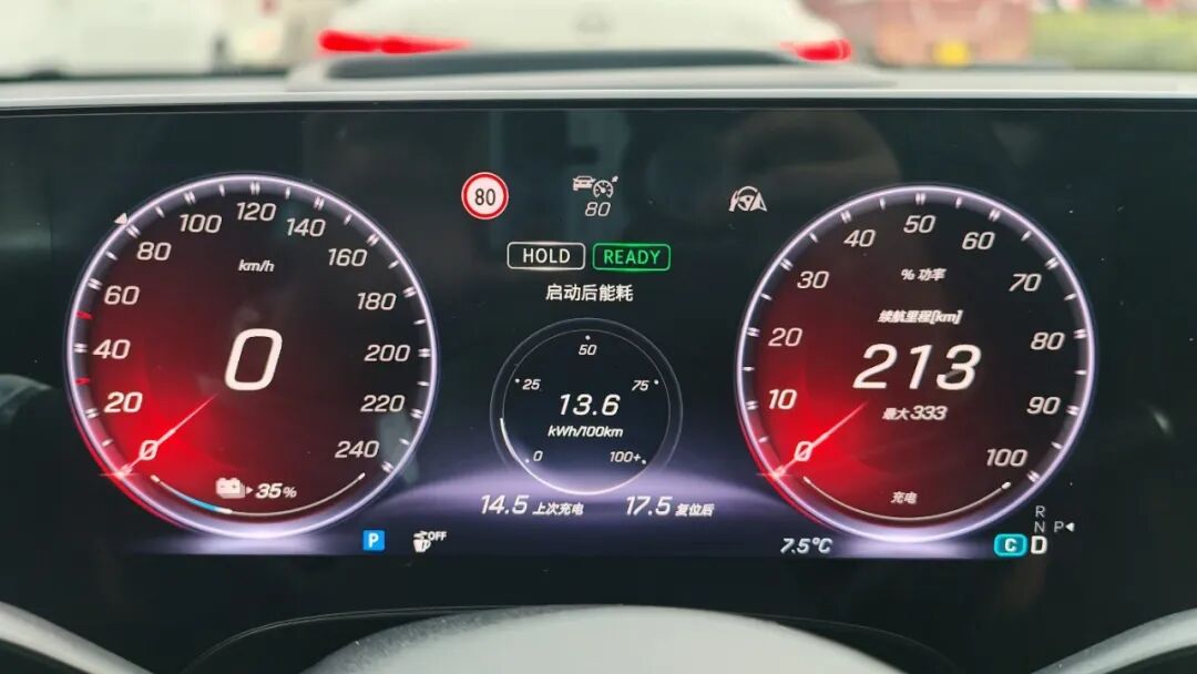 而不怕放置,则指的是空置不掉电。在北方的冬季,最让纯电车主焦虑的其实并不是充电变慢,而是没有地下停车场的话,前一天晚上充满电的车,第二天早晨起来续航会有30到50公里,甚至更多的减少。所以,我们没有停到地下,而是专门停到户外,纯电CLA交出的成绩单是,经过一夜的时间,表显续航数字最多一次下降了3公里。