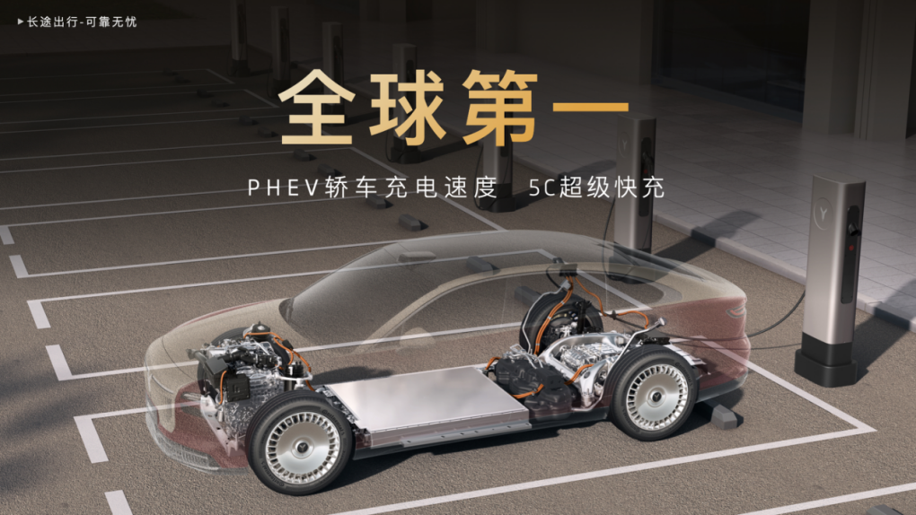 在补能方面,其5C超充技术可实现 20%-80%电量快充仅需12分钟,即便在-25°C极寒环境下仍能保持高效充电。搭载的全新混动专用发动机最高热效率达45.18%,CLTC馈电油耗低至4.9L/100km,馈电状态百公里加速仍保持5秒级水平。