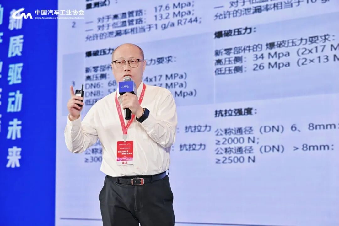 面对二氧化碳系统高达十倍于传统系统的运行压力,卢春鸿将其定性为“高压容器”系统工程。他指出,系统的可靠性遵循木桶原理,任何一个连接点的失效都将导致全局问题。为此,其公司牵头制定的团体标准,在泄露率、爆破压力、压力脉冲耐久次数等关键指标上均大幅超越了欧洲现行标准,并通过独创的“硬密封”电池阀技术,彻底摒弃了在CO₂环境中易失效的橡胶类密封件,实现了与整车同寿命的密封可靠性,为CO₂系统安全上路构筑了坚实根基。