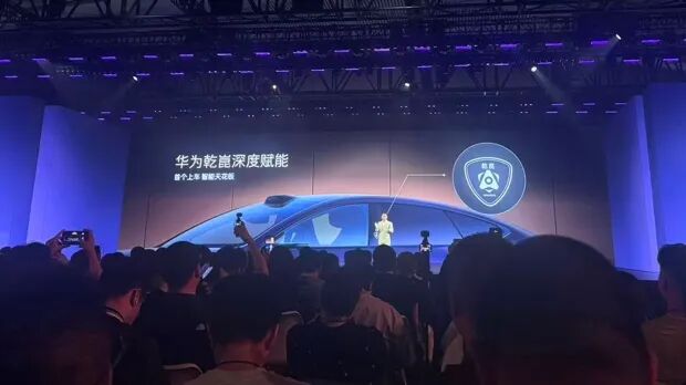 在发布会现场,阿维塔科技董事长王辉称,华为把“乾崑智驾ADS”的标识印在了新车阿维塔12的B柱上,这是行业头一回。