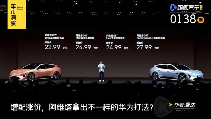 入门即双电机、华为896线激光雷达的新款阿维塔12,上调了起售价,与鸿蒙智行的“五界”步骤一致。阿维塔06T与前不久刚公布预售价的尚界Z7T价格只相差一万元。