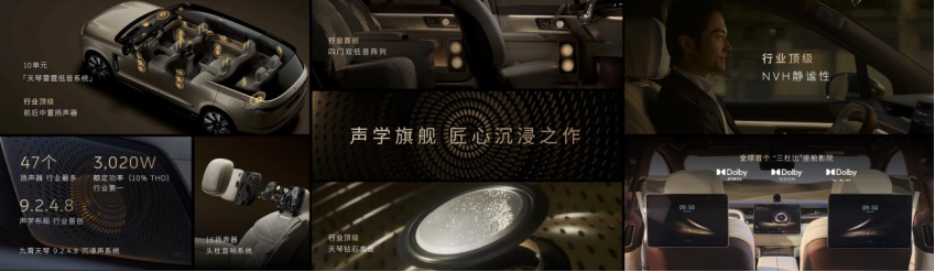 而在智能座舱领域,ES9搭载的“九霄天琴9.2.4.8沉浸声系统”拥有行业最多的47个扬声器和3020W的行业最高额定功率,并成为全球首个获得全舱杜比全景声、杜比视界、杜比动态视频增强“三杜比”认证的座舱影院。这种视听规格,此前只有在百万级豪华车型上才能见到。