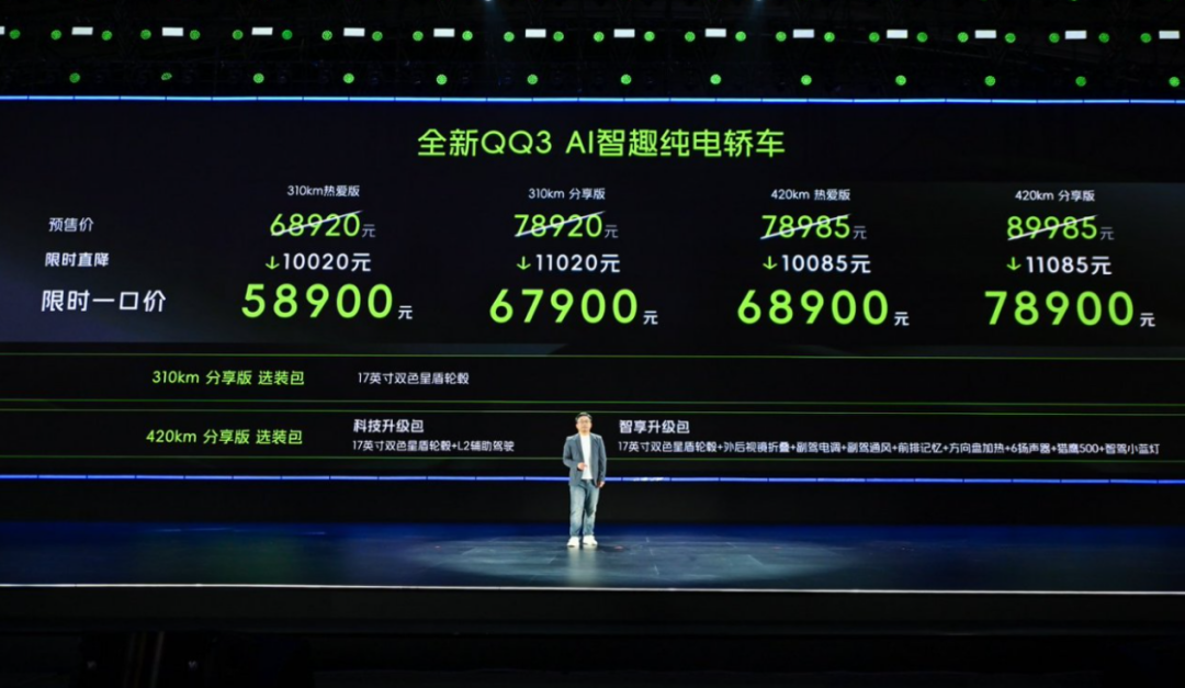 初代QQ是燃油时代的经济型入门车,核心价值是满足基础通勤,以低价打破合资品牌对入门市场的垄断;全新QQ3基于原生智能纯电平台打造,是智电时代的精品小车,以越级配置、全球定位、品牌化运营,瞄准的是与全球经典小型车同台竞技的高端市场。