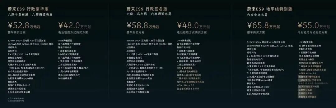如果从产品定价看,ES9整车预售价52.8万起,BaaS租电直接下探到42万起,按照上市第一预售行业习惯,蔚来的这一刀,精准正中腾势D9、Mega、岚图梦想家、GL8 ES的核心价格带。也就意味着,ES9的精准客群,接下来会直接击穿MPV的40万起售门槛,抢下大车出行最肥的利润盘。