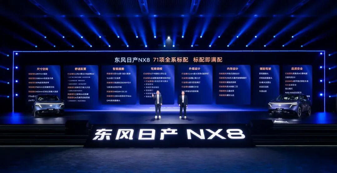 4月8日上市的NX8,直接以14.99万元的价格起售,整体竞争力相当强。这车价格定的非常实诚,对比配置等来看,属于实惠的过日子舒适车。不仅是价格,空间大,配置高。该车在15万的价格上就给了激光雷达、momenta辅助驾驶、宁德时代电池、800V平台和 5C充电,并且实现了增程和纯电同价。所以,NX8订单也爆了,东风日产高管在现场说,该车1小时订单为8432个订单,表现相当不错。