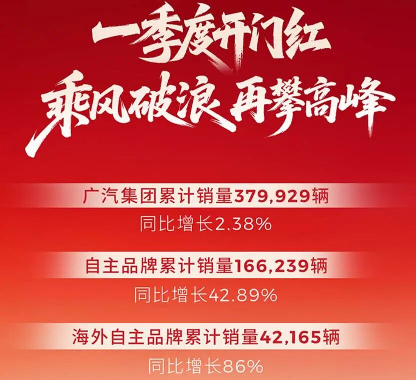 随着“番禺行动”的推进,改革红利逐步显效,广汽一季度收获销量近38万辆、自主品牌增长超42%、自主品牌海外市场增长86%。
